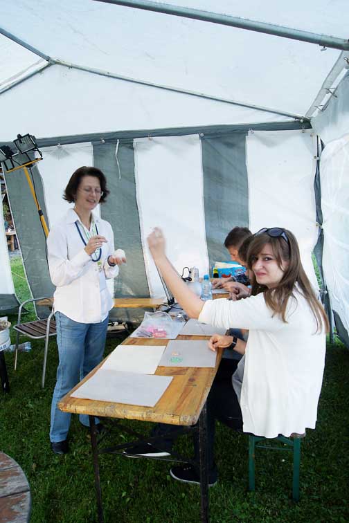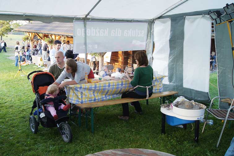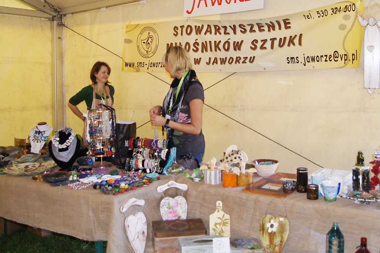 Działo się naprawdę dużo. W dużym namiocie swoje wyroby rękodzielnicze wystawiły gminy uczestniczące w wydarzeniu. Obok na kuchniach polowych gotowały się potrawy przygotowane przez te gminy, które później brały udział w konkursie na najsmaczniejszą potrawę - zwycięstwo należało do Jaworza. Naprzeciwko stało osiem sztalug malarskich. Tam malowano obrazy charakterystyczne dla każdej gminy. W mniejszym namiocie odbywały się warsztaty prowadzone przez naszych członków: warsztaty ceramiki, malowania na szkle, filcowania na formie styropianowej oraz warsztaty biżuterii z koralików. Było naprawdę cudownie a pogoda rewelacyjna.