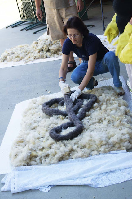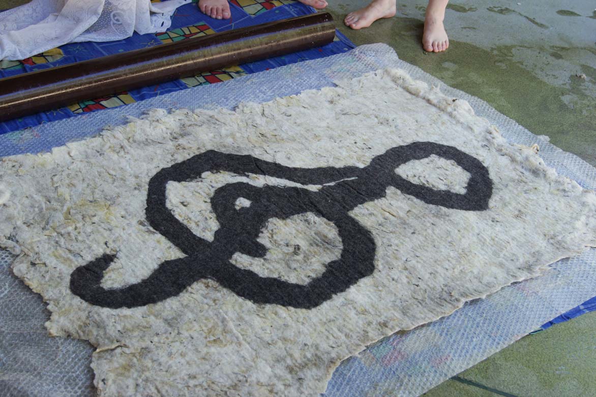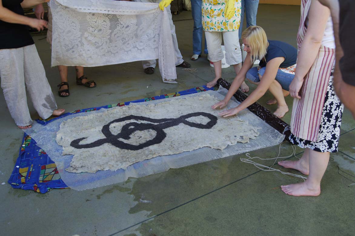 21 sierpnia w Jaworzu, w tutejszym amfiteatrze zorganizowaliśmy pokaz filcowania. Każdy mógł wziąć w nim czynny udział i przyczynić się do powstania wełnianego dywanika z motywem klucza wiolinowego.