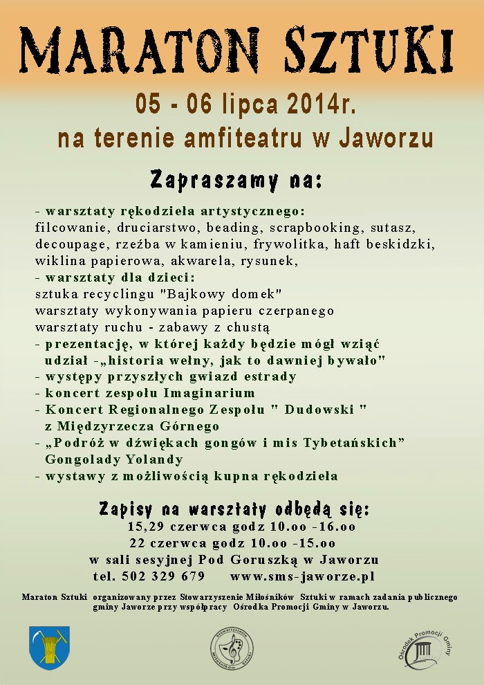Już w tą niedzielę ruszają zapisy na warsztaty rękodzielnicze, które będą się odbywać podczas tegorocznego Maratonu Sztuki w Jaworzu.