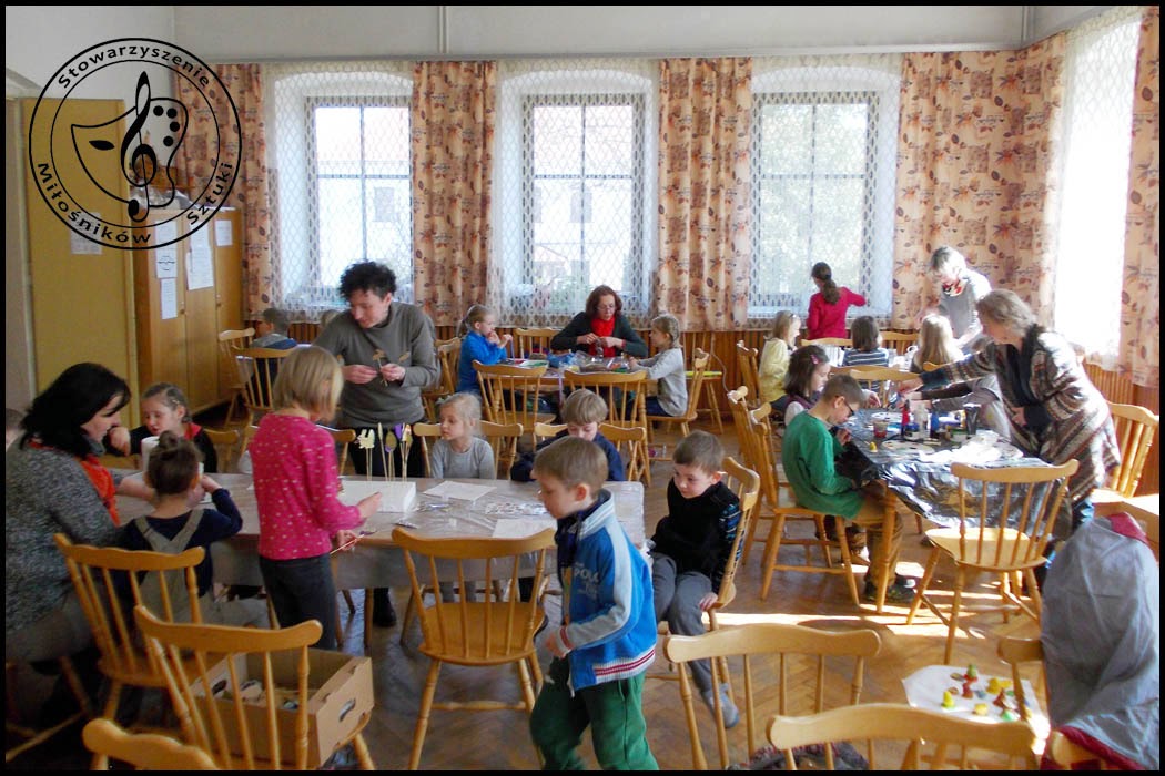 Tak dzieci przygotowywały ozdoby wielkanocne na warsztatach w salce przy parafii Ewangelicko-Augsburskiej w Jaworzu.